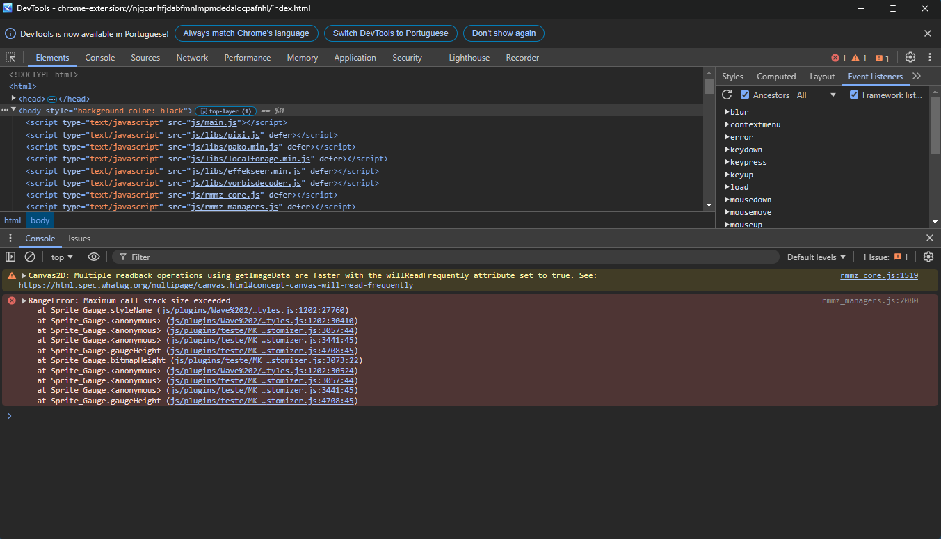 The problem disappears when I disable an animation plugin. Too bad, I need it too. I'll send you the console message in case you manage to do anything about it. And I use MZ