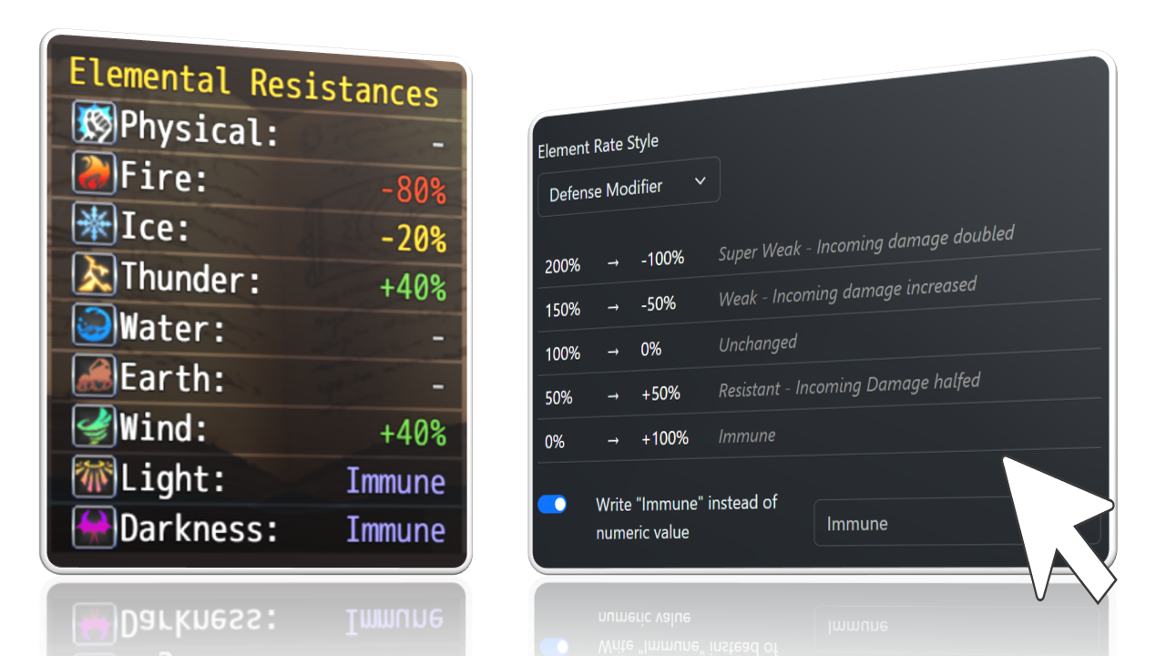 By default, RPG Maker uses a very technical system to calculate elemental damage, which is not very user-friendly. Choose from 4 different calculation styles!